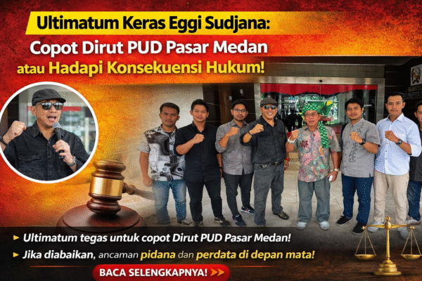 Medan – Tekanan terhadap Direktur Utama PUD Pasar Kota Medan, Anggia Ramadhan, kian memanas. Kali ini datang langsung dari advokat senior Profesor Dr. Eggi Sudjana SH., M.Si yang melontarkan kritik tajam sekaligus ultimatum kepada Wali Kota Medan agar segera mengambil langkah tegas.